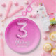Plato De Papel Girly Pink Glitter Balloon 3rd Birthday