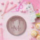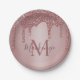 Plato De Papel Girly Rosa Oro Purpurina Dris Monograma Cumpleaños