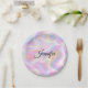 Plato De Papel Girly Vibrant Pastel Holographic Swirl Design