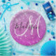 El nombre del monograma y la placa inicial de papel del purpurina púrpura gitano y glamuroso. Personalice esta placa de bonito con su nombre, monograma o inicial. Incluso puede cambiar el color del texto y el estilo de letra usando la opción personalizar.