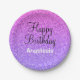 Plato De Papel Glam Happy Birday Ombre Purple Purpurina Sparkles