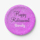 Plato De Papel Glam Happy Retirement Purple Purpurina Sparkle