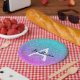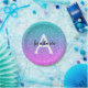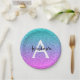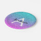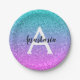 Plato De Papel Glam Purple Aqua Purpurina Sparkle Gradiente Monog