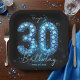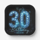 Celebrate the big 3-0 in spectacular style with these customizable blue and black 30th birthday paper plates. This eye-catching design features a large, 3D-effect number "30" created with a lustrous, jewel-like blue bubble texture that pops against a sleek black background. Accented with faux glitter sparkles, glowing bokeh lights, and elegant typography, these plates set the perfect tone for a sophisticated evening celebration or a fun "Dirty Thirty" bash.