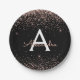 Plato De Papel Glitter de oro rosa Monograma Cumpleaños Brillante
