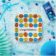 Diseño abstracto con un toque retro de mediados de siglo con esferas delineadas en negro y óvalos en azul brillante, amarillo dorado y naranja quemado sobre un fondo blanco. Un diseño de personalizable para que puedas personalizar con tu propio texto, imágenes e ideas. Imagen original de arte digital creada por Jess Perry en QuirkyChic Retro.