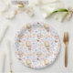 Placas de papel con un patrón tierno y caprichoso. Globos de aire caliente y bonitas nubes con caras entre estrellas y corazones y globos. Los suaves colores pastel componen este adorable diseño.