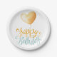 Las placas de fiesta de papel cuentan con un globo dorado y un gran deseo de cumpleaños. Gráfica digital acuarela con guión elegante