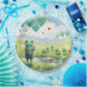 Una rana alegre sosteniendo globos azul-verde se para en la primera línea de un exuberante prado, con otras muchas ranas en el fondo realizando un baile sincronizado. Dos pequeños globos rojos en forma de corazón flotan entre los globos más grandes, añadiendo un toque de brillo.