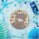 Whimsical Hot Air Balloons productos para el hogar, oficina y uso personal incluyendo almohadas y almohadas corporales, bolsas de regalo, cajas de regalo, ornamentos, raciones de bandejas, tablas de quesos, toallas de cocina, relojes de pared, cintas, latas de dulces, papel tisular, servilletas de papel, cajas de almuerzo, camas de perro, lámparas, frascos, etc. Cuenta con caprichosos globos de aire caliente en naranja gris, azul, verde azulado y oxidado sobre un suave fondo rosado. Muchos de estos productos también tienen un adorable osito de peluche marrón.