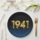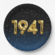 Globos dorados de cumpleaños mylar para el año de nacimiento de 1941 sobre fondo negro gradiente y azul con estrellas nocturnas