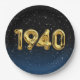 Globos dorados de cumpleaños mylar para 1940 cumpleaños en fondo negro gradiente y azul con estrellas nocturnas.