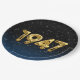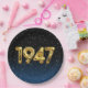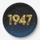 Globos de Relieve metalizado dorado para el año de nacimiento de 1947 sobre fondo negro degradado y azul con estrellas nocturnas para la fiesta de cumpleaños.