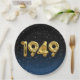 Globos de Relieve metalizado dorado para el año de nacimiento de 1949 sobre fondo negro degradado y azul con estrellas nocturnas para la fiesta de cumpleaños.