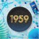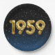 Globos de Relieve metalizado dorado para el año de nacimiento de 1959 sobre fondo negro degradado y azul con estrellas nocturnas para la fiesta de cumpleaños.