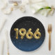 Globos dorados de cumpleaños mylar para 1966 cumpleaños en fondo negro gradiente y azul con estrellas nocturnas.