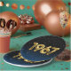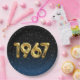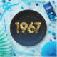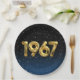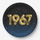 Globos de Relieve metalizado dorado para el año de nacimiento de 1967 sobre fondo negro degradado y azul con estrellas nocturnas para la fiesta de cumpleaños.