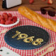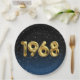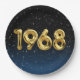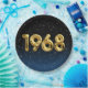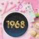 Globos de Relieve metalizado dorado para el año de nacimiento de 1968 sobre fondo negro degradado y azul con estrellas nocturnas para la fiesta de cumpleaños.