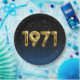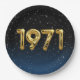 Globos dorados de cumpleaños mylar para el año de nacimiento de 1971 sobre fondo negro degradado y azul con estrellas nocturnas