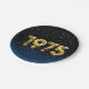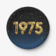 Globos dorados de cumpleaños mylar para el año de nacimiento 1975 sobre fondo negro gradiente y azul con estrellas nocturnas.