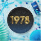 Globos de Relieve metalizado dorado para el año de nacimiento de 1978 sobre fondo negro degradado y azul con estrellas nocturnas para la fiesta de cumpleaños.