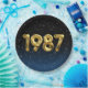 Globos de Relieve metalizado dorado para el año de nacimiento de 1987 en fondo negro degradado y azul con estrellas nocturnas para la fiesta de cumpleaños.