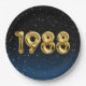 Globos de Relieve metalizado dorado para el año de nacimiento de 1988 en fondo negro degradado y azul con estrellas nocturnas para la fiesta de cumpleaños.