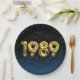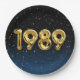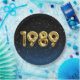 Globos de Relieve metalizado dorado para el año de nacimiento de 1989 sobre fondo negro degradado y azul con estrellas nocturnas para la fiesta de cumpleaños.