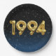 Globos de Relieve metalizado dorado para el año de nacimiento de 1994 sobre fondo negro degradado y azul con estrellas nocturnas para la fiesta de cumpleaños.