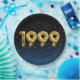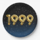 Globos de Relieve metalizado dorado para el año de nacimiento de 1999 sobre fondo negro degradado y azul con estrellas nocturnas para la fiesta de cumpleaños.
