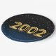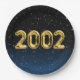 Globos de Relieve metalizado dorado para el año de nacimiento 2002 sobre fondo negro degradado y azul con estrellas nocturnas para la fiesta de cumpleaños.