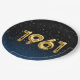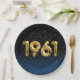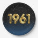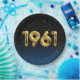 Globos dorados de cumpleaños mylar para el año de nacimiento de 1961 sobre fondo negro gradiente y azul con estrellas nocturnas