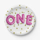 Plato De Papel Globos rosados calientes Dots de oro UN Fiesta de