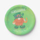 El Día de San Patricio todos pretendemos ser irlandeses y en modo fiesta verde. Bienvenido a tu fiesta St. Paddy con estos platos de papel personalizado. Las empresas pueden mostrar el nombre y la dirección del pub/bar o las personas pueden elegir utilizar su nombre y fecha de fiesta. Edita como quieras. Contra un fondo de brillantes rocas de champú se alza un bonito gnomo con una exuberante barba roja, pipa y herradura para la suerte. Un sombrero de top verde y zapatos a juego exhiben cuadrados de oro. Discursos de "bienvenida" en la parte superior con una fuente celta blanca. A los pies del encantador gnome está su familia o nombre de negocios y dirección / fecha. Celebra el Día de San Patricio con estilo y avergüenza a tu fiesta.