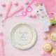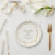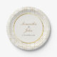 Serve sweet moments on paper plates featuring the signature gold geometric pattern with an ivory and gold circle highlighting your wedding details. Each plate becomes part of the celebration's golden thread, perfectly matching your suite while creating elegant dessert and luncheon memories. Coordinates with other products from the wedding suite.
