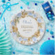 Elegant and dreamy, this design combines watercolor blue roses and gilded leaves for an unforgettable bridal shower statement.