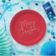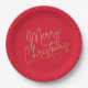 Plato De Papel Gold Merry Christmas on Red