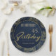 PLATO DE PAPEL GOLD NAVY ELEGANT ROSA FLORAL CUALQUIER CUMPLEAÑOS