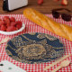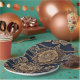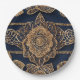 Golden patterns is a beautiful AI art that shows floral golden design on a dark blue background. They are the perfect paper plates to impress your guests.
