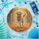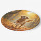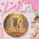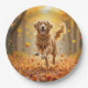 Plato De Papel Golden Retriever corriendo en el bosque otoñal