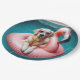 Plato De Papel Golden Retriever Floating On a Flamingo Pool Toy