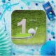 Golf 1º cumpleaños con número uno en placas de papel verde