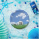pelota blanca de golf en césped verde con club de golf y fondo de cielo para 55 años número de edad en el balón de golf puede ser editado.