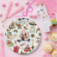 These Golf Christmas Paper Plates feature Santa Claus golfing on a festive course, surrounded by bright holiday decorations, gifts, and a cheerful red golf flag.