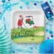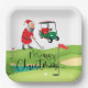Plato De Papel Golf Santa Claus golfer Feliz Navidad en verde