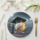 Plato De Papel Gorra de graduación en un globo de béisbol en llam