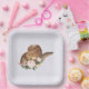 Plato De Papel Gorra marrón de vaca con flores rosadas