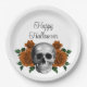 Gothic Floral Skull Happy Halloween Paper Plates.