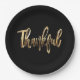Faux Elegant Faux Gold Script Acción de Gracias Cena Fiesta Platos de papel negro y dorado