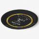 Las placas del Partido de la Graduación Negra y Blanca tienen un texto en blanco que dice 'Gracias por celebrar con nosotros'. Puede personalizar sus platos con el nombre del graduado y el año de clase. Un tope para graduados está por encima del texto.